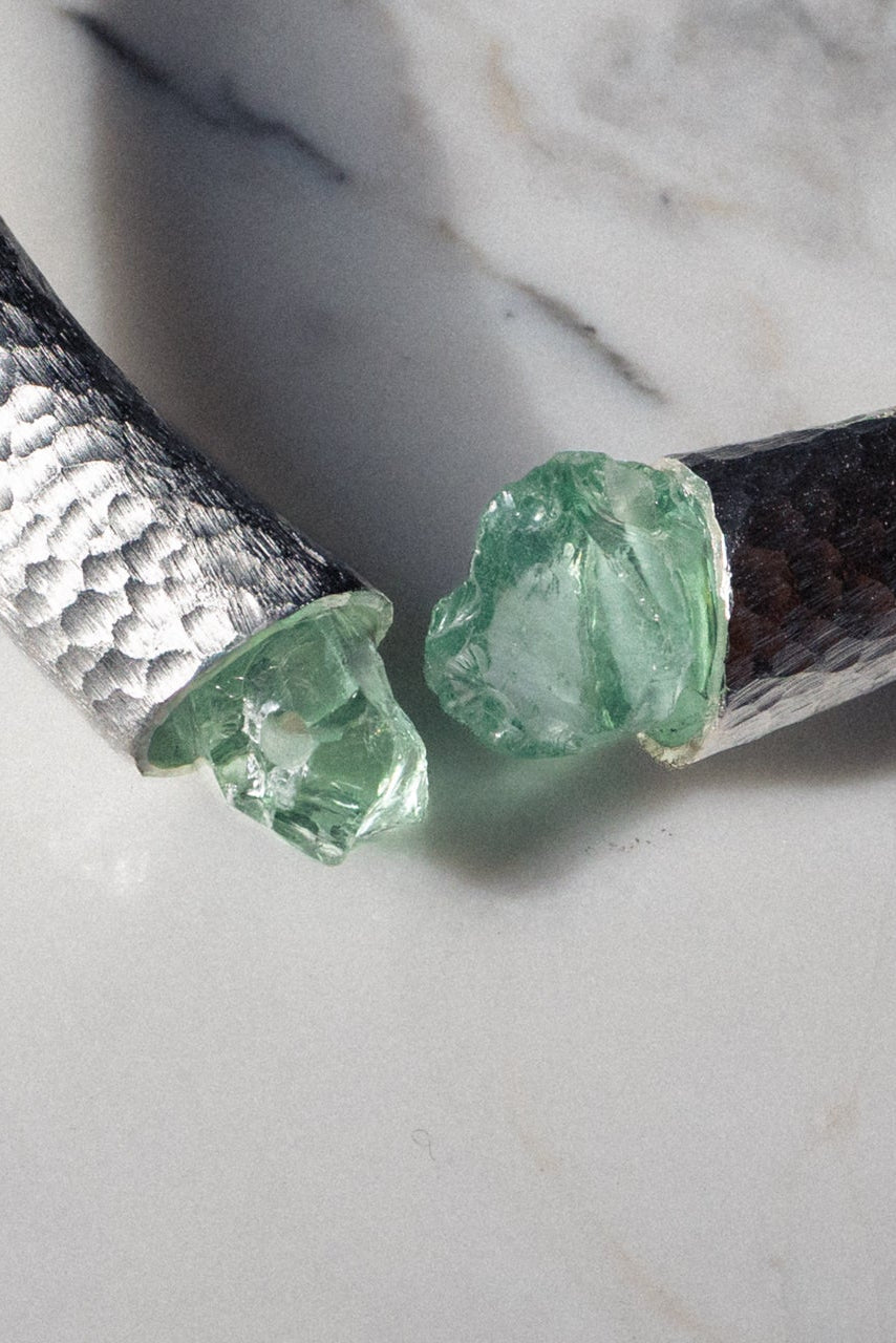 The C- Necklace in hammered silver with Amethyst Stone