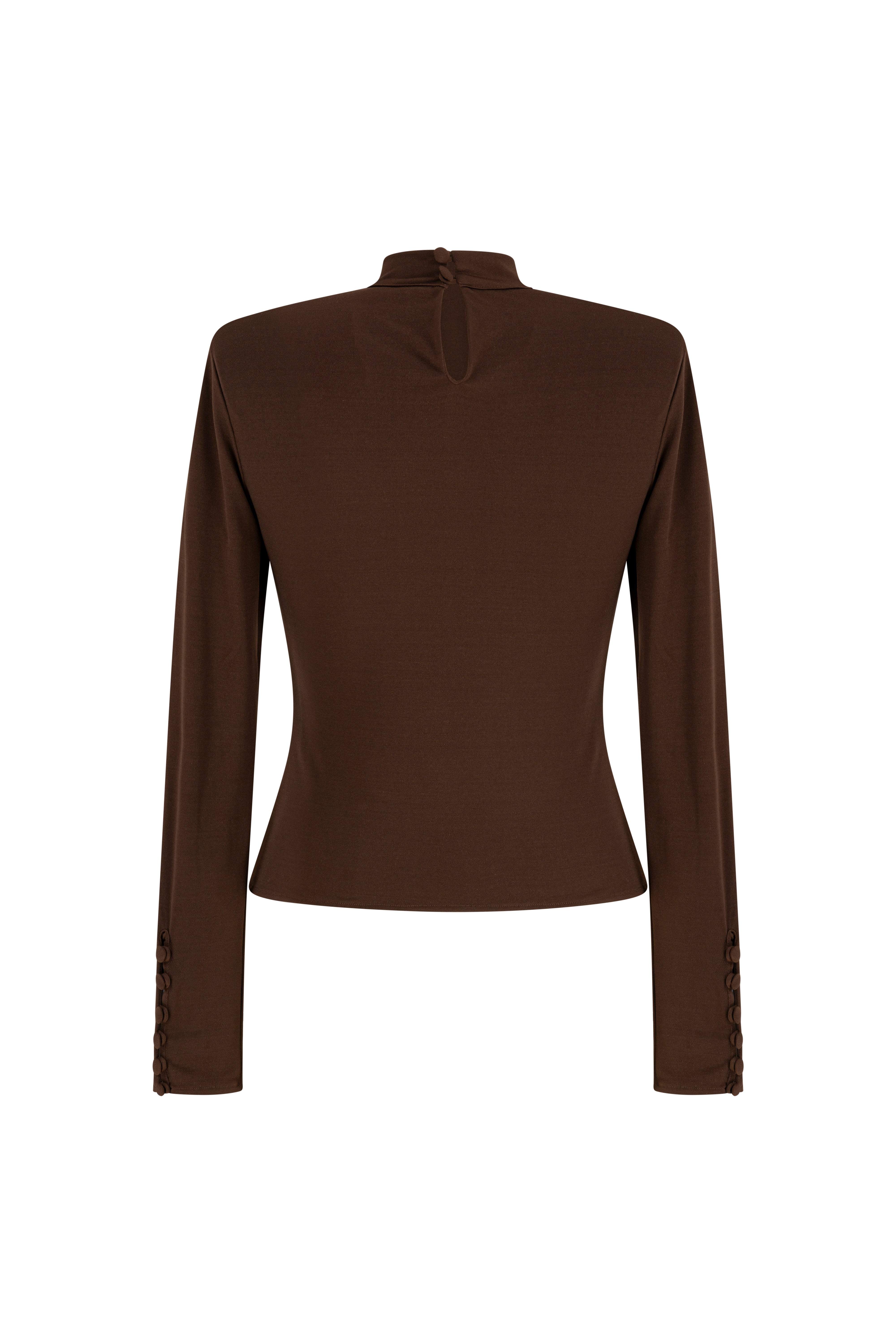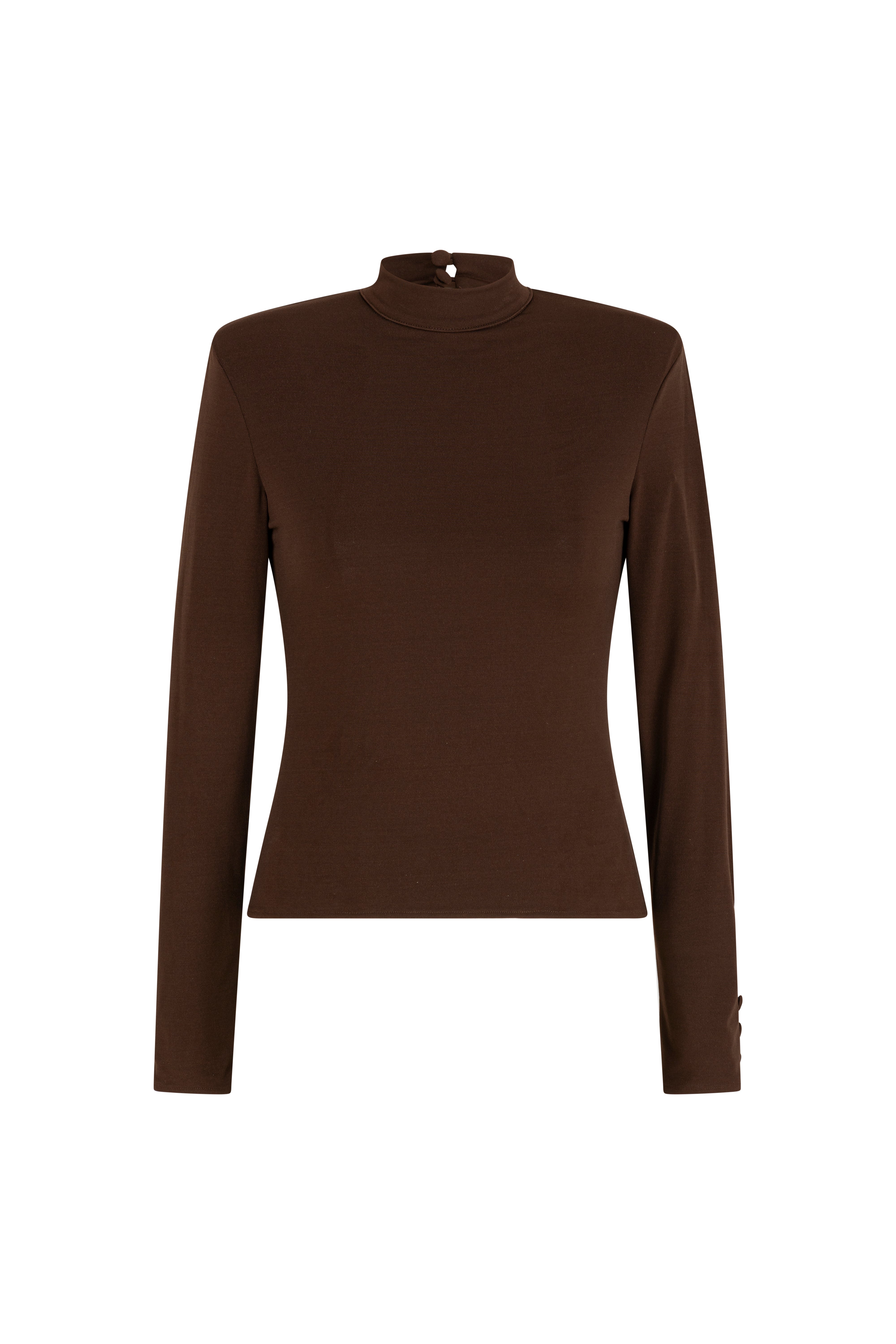 STRETCH HIGH NECK TOP WITH HAND CUFF DETAILS