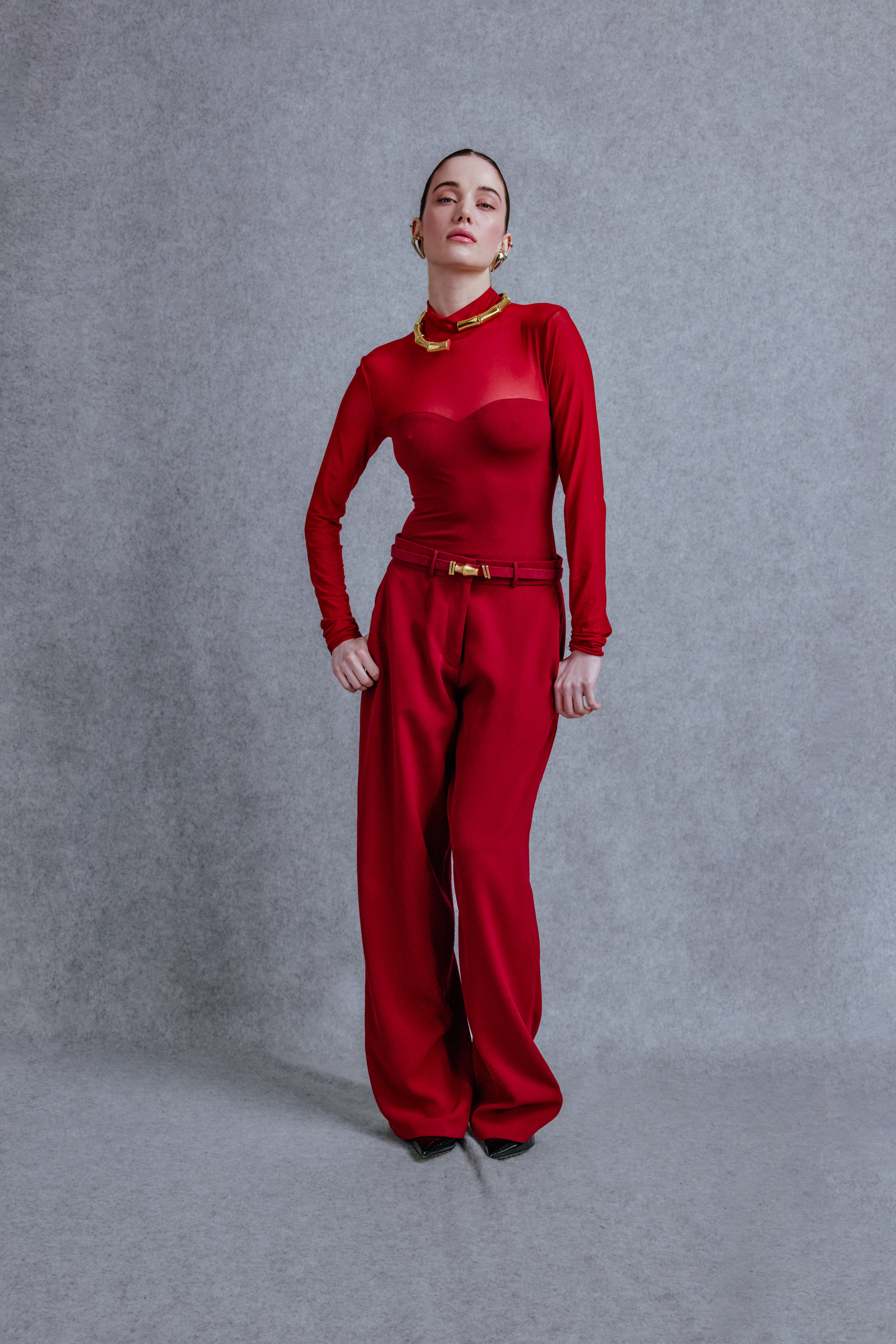 STRAIGHT CUT BLACK TAILORED CREPE PANTS