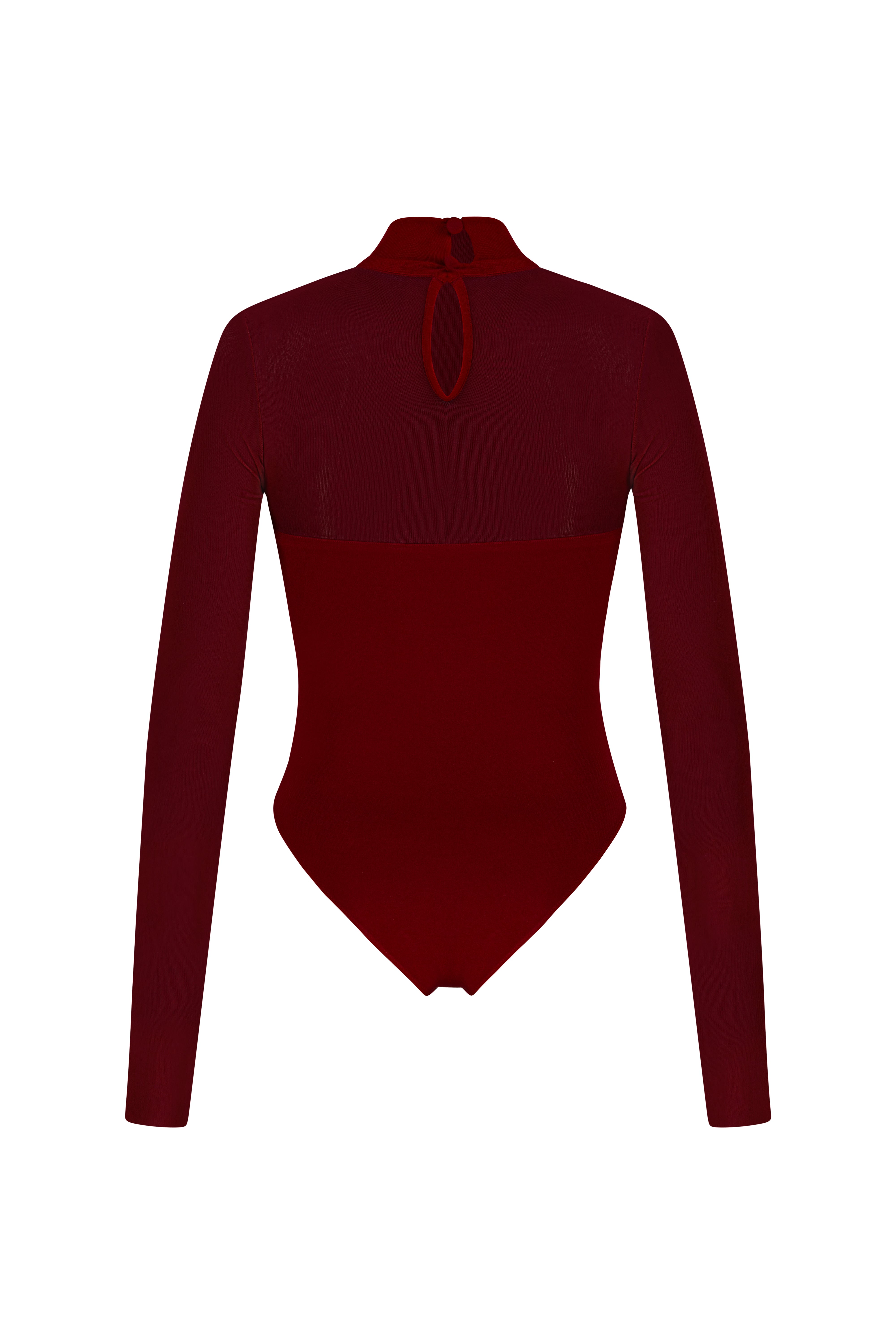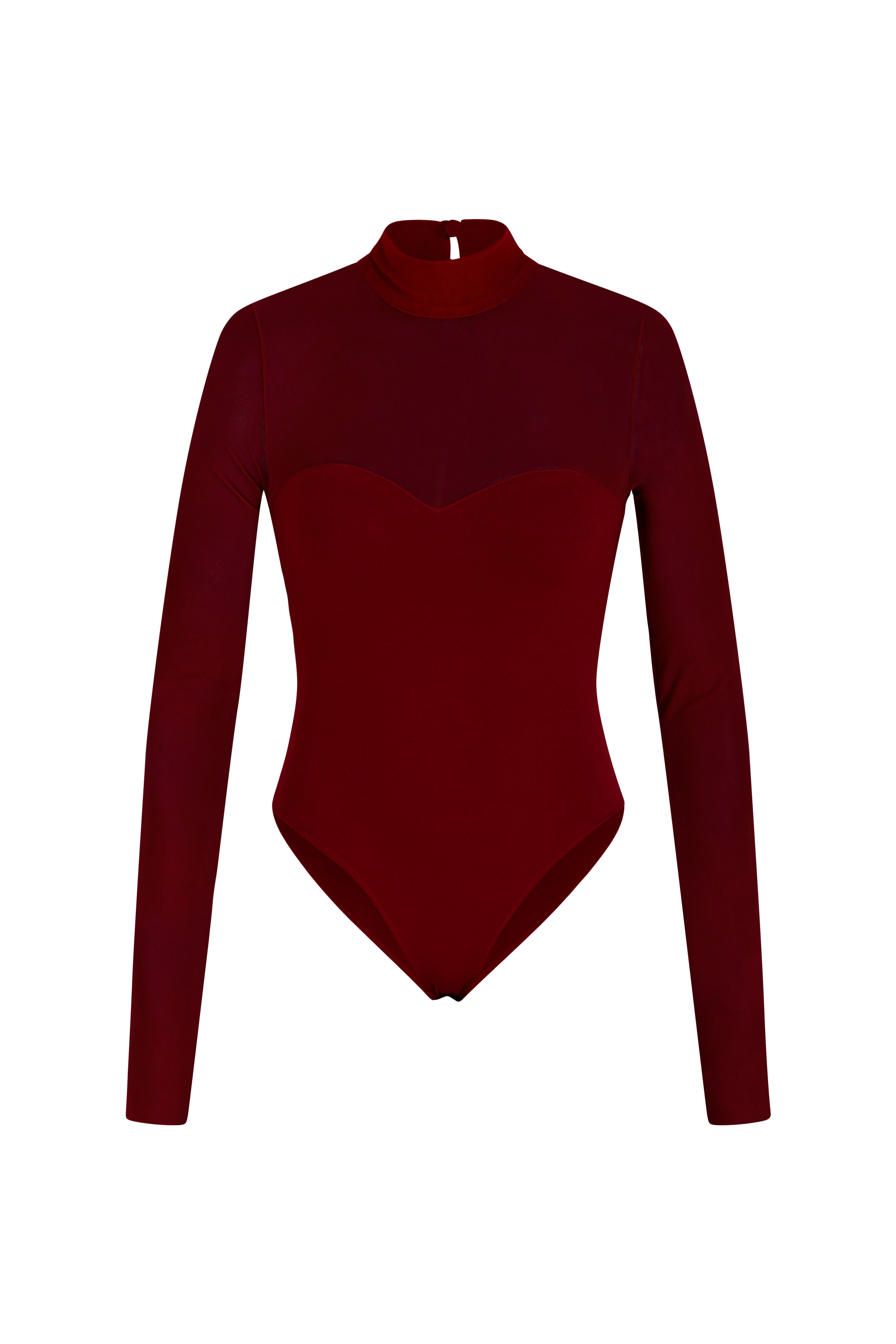 STRETCH BODY WITH LONG TULLE TRANSPARENT SLEEVES AND CHEST AND COTTON STRETCH BODICE.