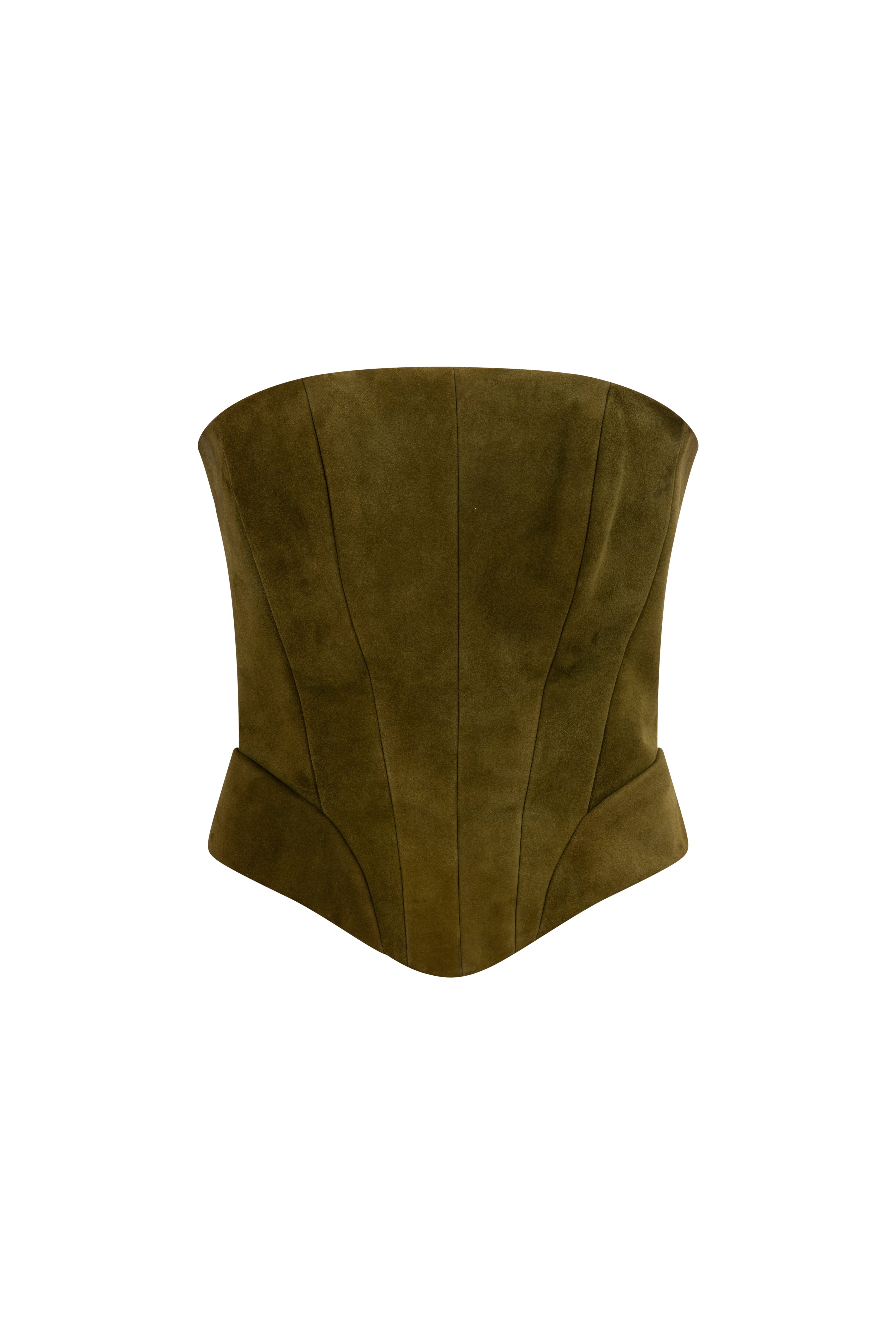 SUEDE LEATHER LONG CORSET WITH EXAGGERATED WAIST DETAIL